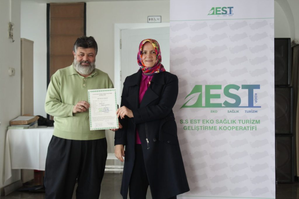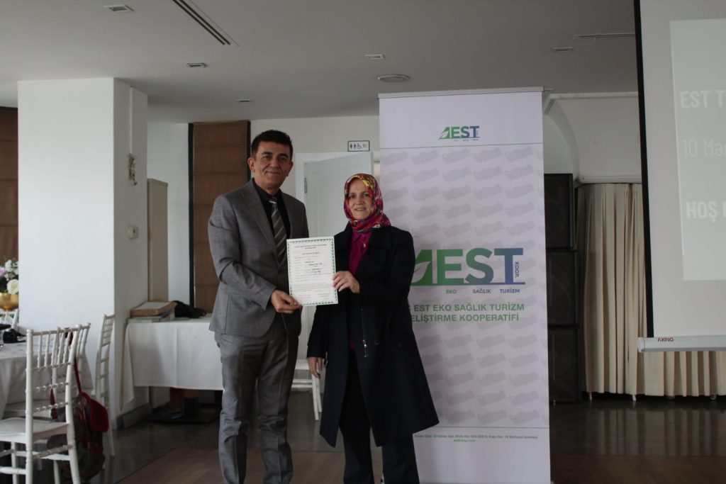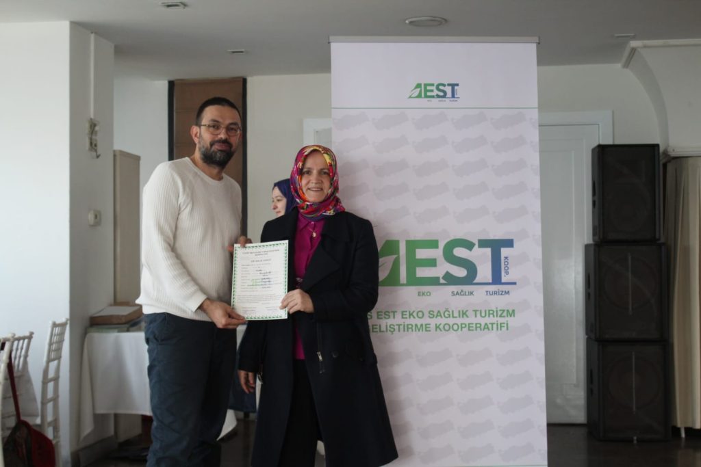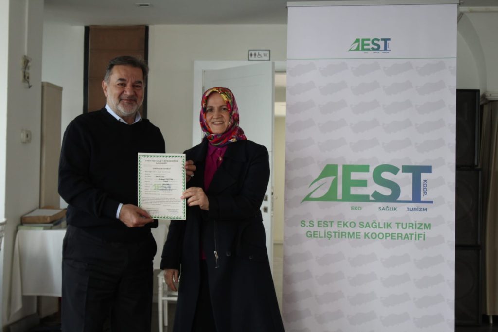 10 Mart 2024 tarihinde gerçekleştirilen Olağanüstü Genel Kurulumuzda ortaklarımıza “Ortaklık Pay Senetleri ” S.S Est Eko Sağlık Turizm Geliştirme Kooperatifi Başkanımız Emine Ramazanoğlu tarafından takdim edildi.